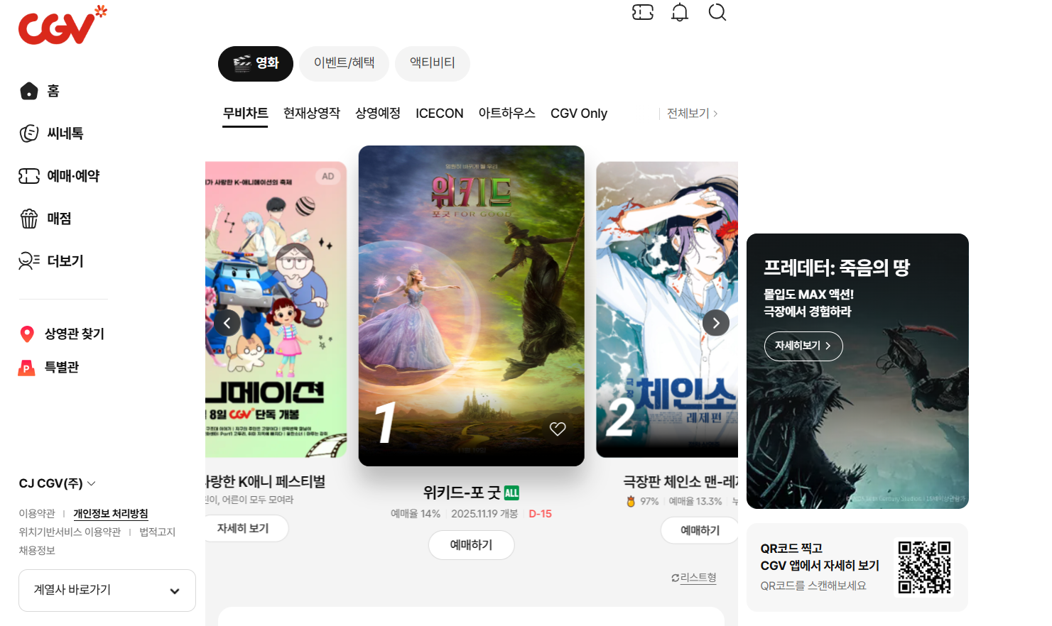 11월에는 위키드 시즌2, 위키드 포굿이 개봉합니다. 특히 IMAX와 4DX 상영관 예약은 일반 상영관보다 2배 빠르게 마감되니 우선 체크 리스트에 추가하세요.